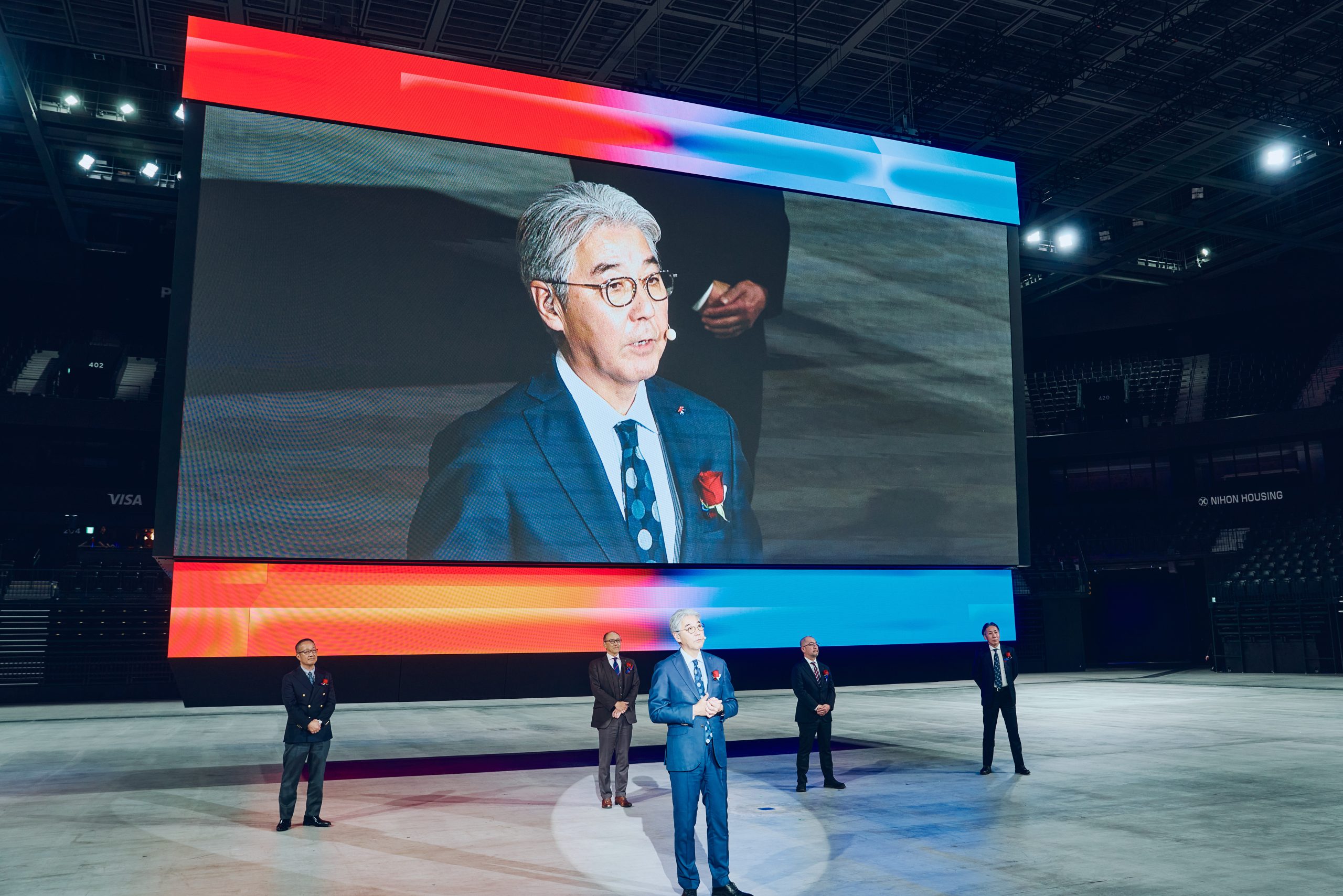本年、丹青社は創業80周年という大きな節目を迎えます。この記念すべき年に、自らが空間づくりに携わった実績である「TOYOTA ARENA TOKYO」を「はじまりの場所」としてグループ入社式および社長賞表彰式を開催できたことを大変嬉しく思います。