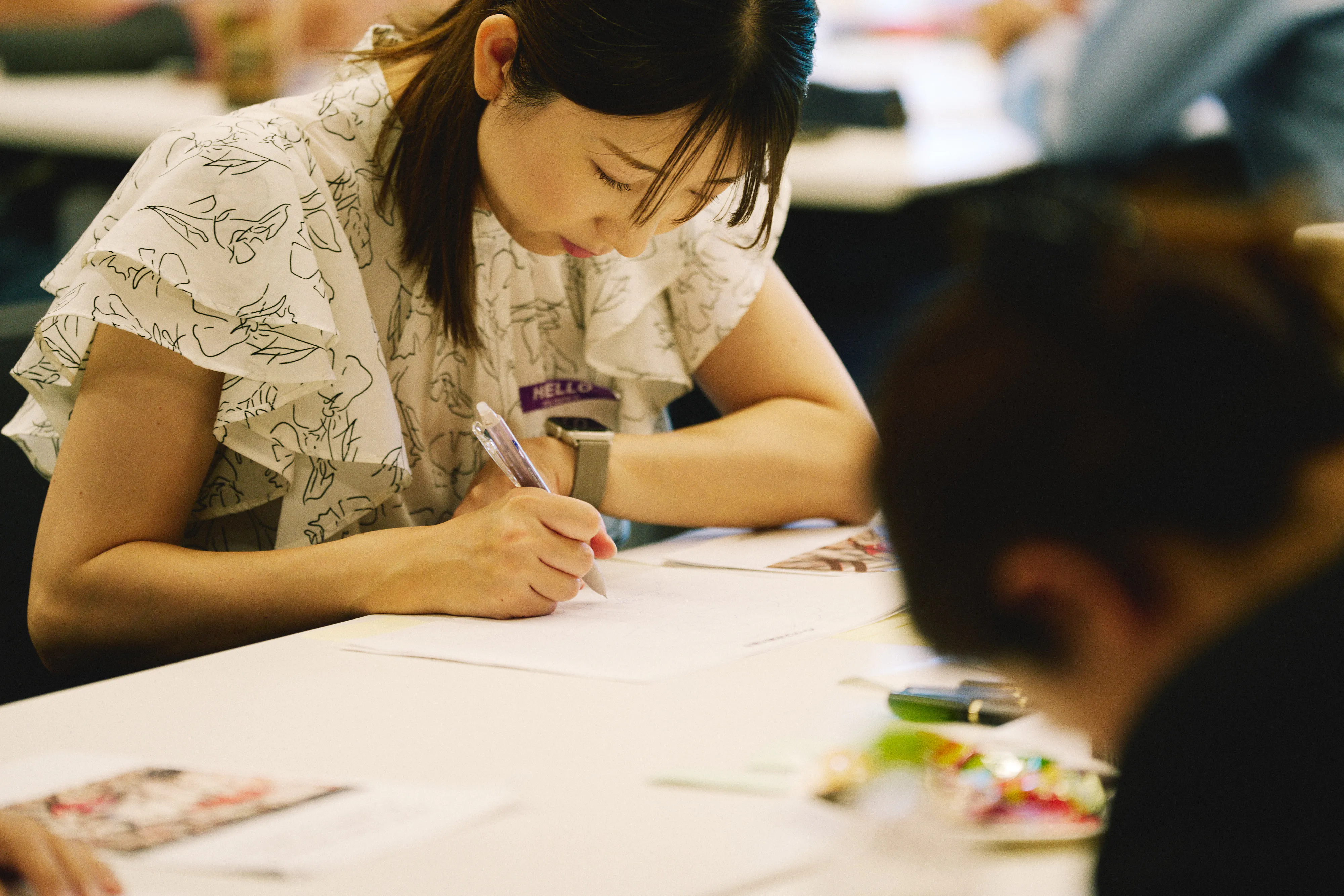 「ワークショップは『パーパス編』『バリュー編』の2部構成で行いました。パーパス編では、自分の大切にしている価値観を掘り下げたり、参加者同士でインタビューし合うことで自分のパーパスを見つけていきました。バリュー編では、5つの『バリュー/私たちの価値観』に対して日々の業務との結びつきを書き出し、その上であまり結びつきが強くない、実施できていない項目について、これからどのように取り組んでいくかを宣言していくプログラムにしました」