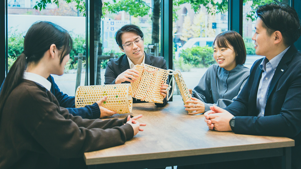 廃材の活用先を見つけられただけでなく、報告会では社員から「こんな機能もつけられるのではないか」といった意見が寄せられるなど、予想以上に前のめりな反応が返ってきまして、ゴールに向けて大きく前進できたのではないかと感じています。抽象的な課題に対してさまざまな視点を掛け合わせて取り組めば、社内で進めるよりもはるかに早く、遠くまでたどり着くことができる。そう実感できたのが何よりの収穫だったと思います。今後も共創のノウハウを蓄積し、他部署からも産学連携の相談が来るような部署としてOur100th推進部を成長させていきたいです。