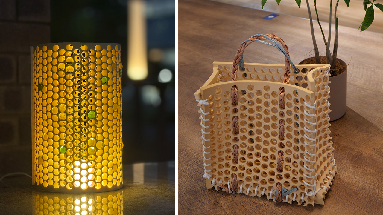 いろいろなアイデアを善野さんをはじめ丹青社の方々が広げてくださったことです。配置イメージや使用イメージなどまで一緒に考えてくださったため、完成したその先を意識しながら進められました。特に、環境に配慮していることを見た目でもわかるようにしたらどうかというアドバイスは印象に残っています。そのアドバイスをいただいたからこそ留め具などの部品も廃材で統一し、ひと目で意図や価値が分かるプロダクトに仕上げることができました。