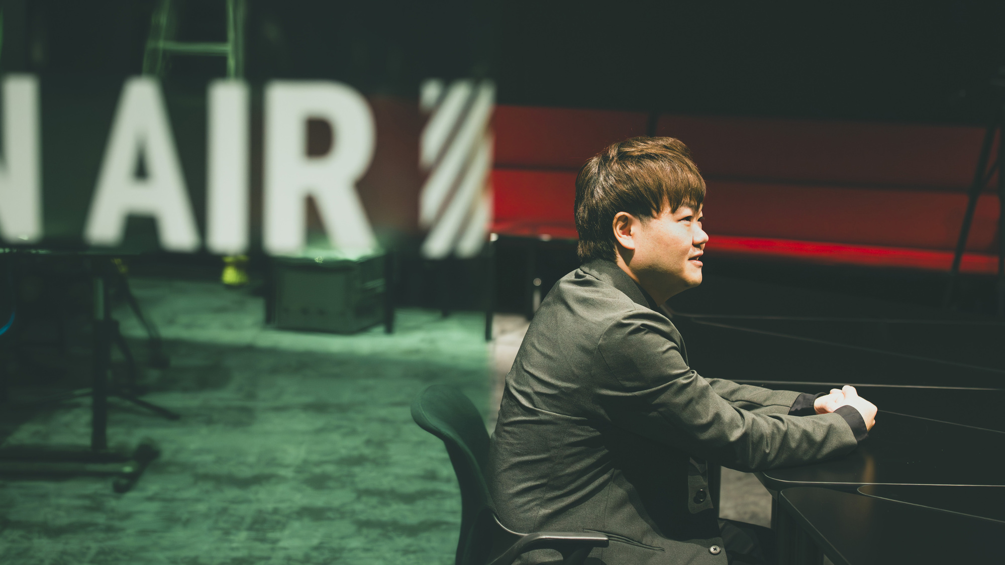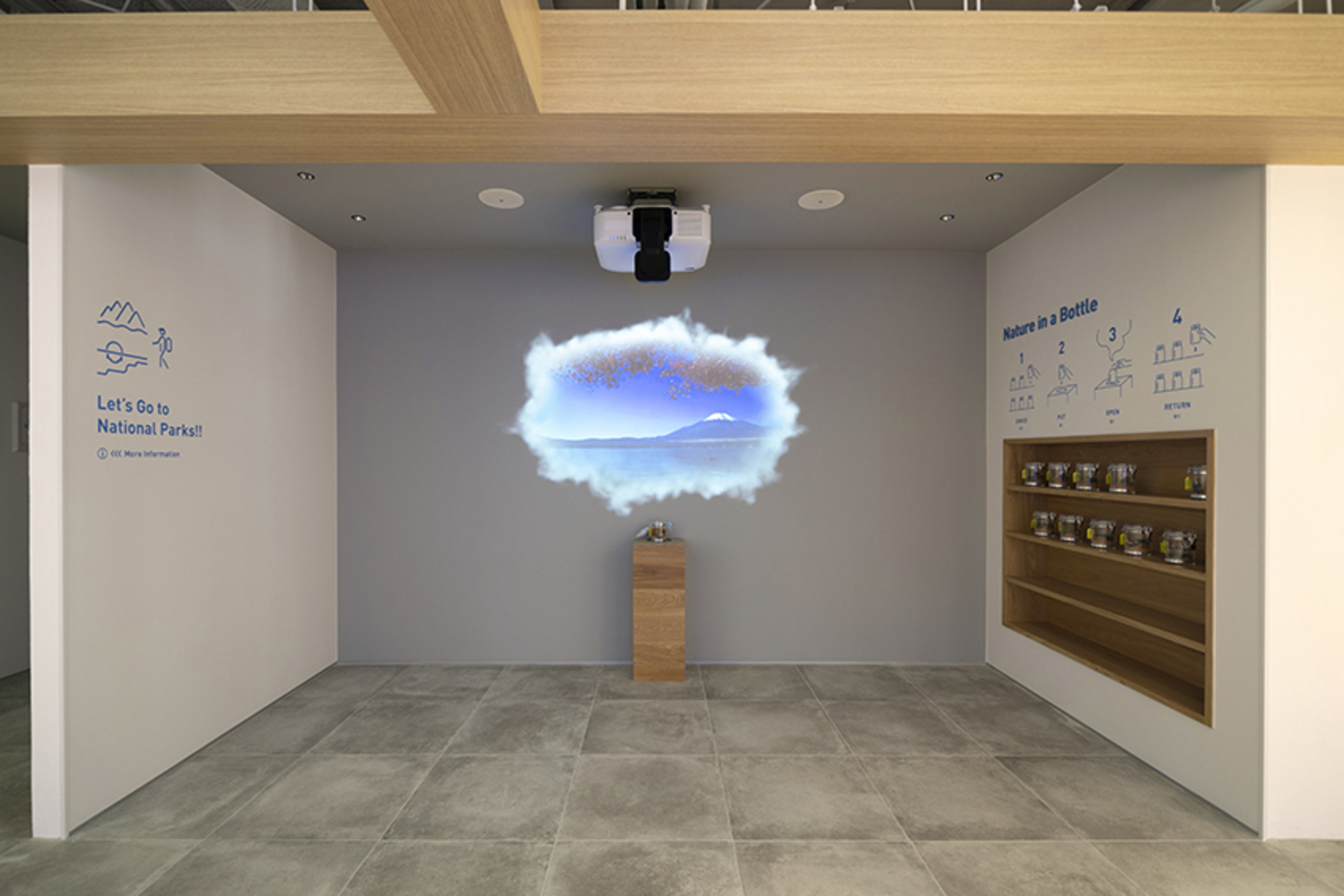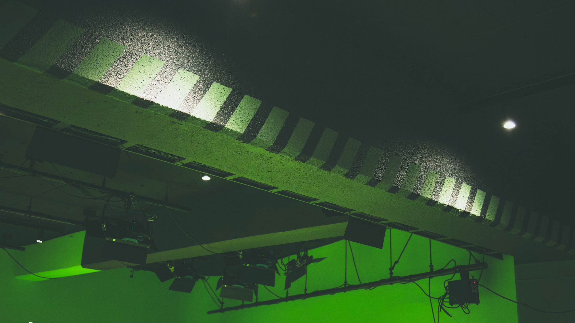また、今インタビューを受けているこの部屋、マークスリー スタジオ[Mk_3 STUDIO]も関わらせていただきました。丹青社の空間演出チームであるCMIセンターが運営するスタジオで、隠れ家や秘密基地のような世界観で設計したのが楽しかったです。丹青社のロゴをモチーフにした斜線のコミュニケーションマークをつくったり、オンラインセミナーで使用するCG背景も制作しました。